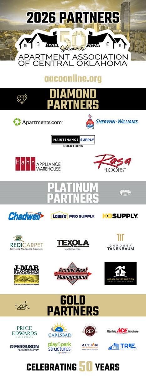 The Apartment Association of Central Oklahoma strongly encourages its members to "Get Involved". We have several committees, events, and opportunities to give back to our industry and community. Check out just a few of those opportunities below and get involved today.
