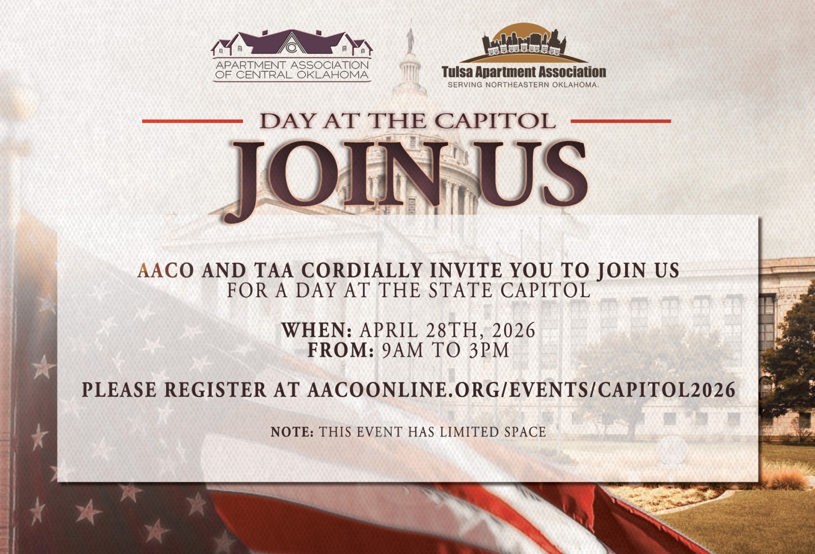 Together with the Tulsa Apartment Association (TAA) we are hosting a Day at the Capitol event.