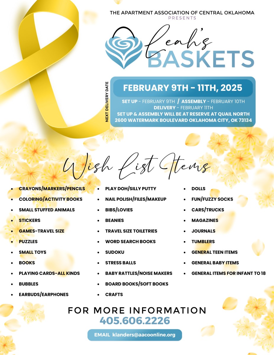 Our members assemble and deliver baskets to the Oklahoma Children's Hospital four times a year. We deliver 200 baskets for Valentine's Day, Easter, the Fourth of July, and Halloween. The children who receive baskets range in age from just a few days old to eighteen years old. These deliveries are made possible by donations from our members and our community.