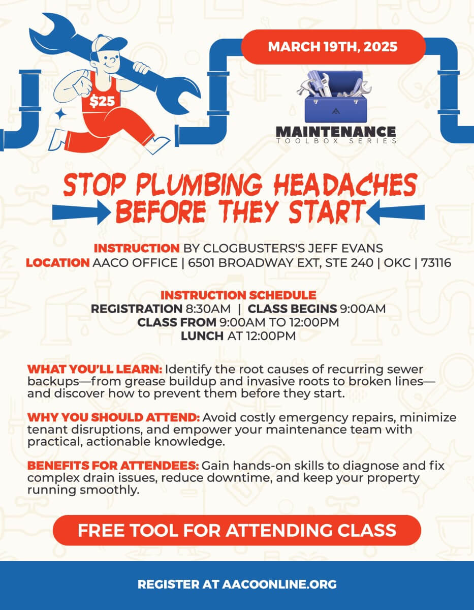 Recurring sewer backups can be costly, disruptive, and frustrating — but they don’t have to be. In this Maintenance Toolbox session, we’ll break down the root causes of common sewer issues, from grease buildup and invasive tree roots to damaged or broken lines. Attendees will walk away with practical, hands-on knowledge to diagnose complex drain problems, prevent emergencies before they happen, and keep their property running smoothly. This class is designed to equip maintenance teams with real-world skills that reduce downtime, minimize resident disruptions, and avoid expensive repairs.